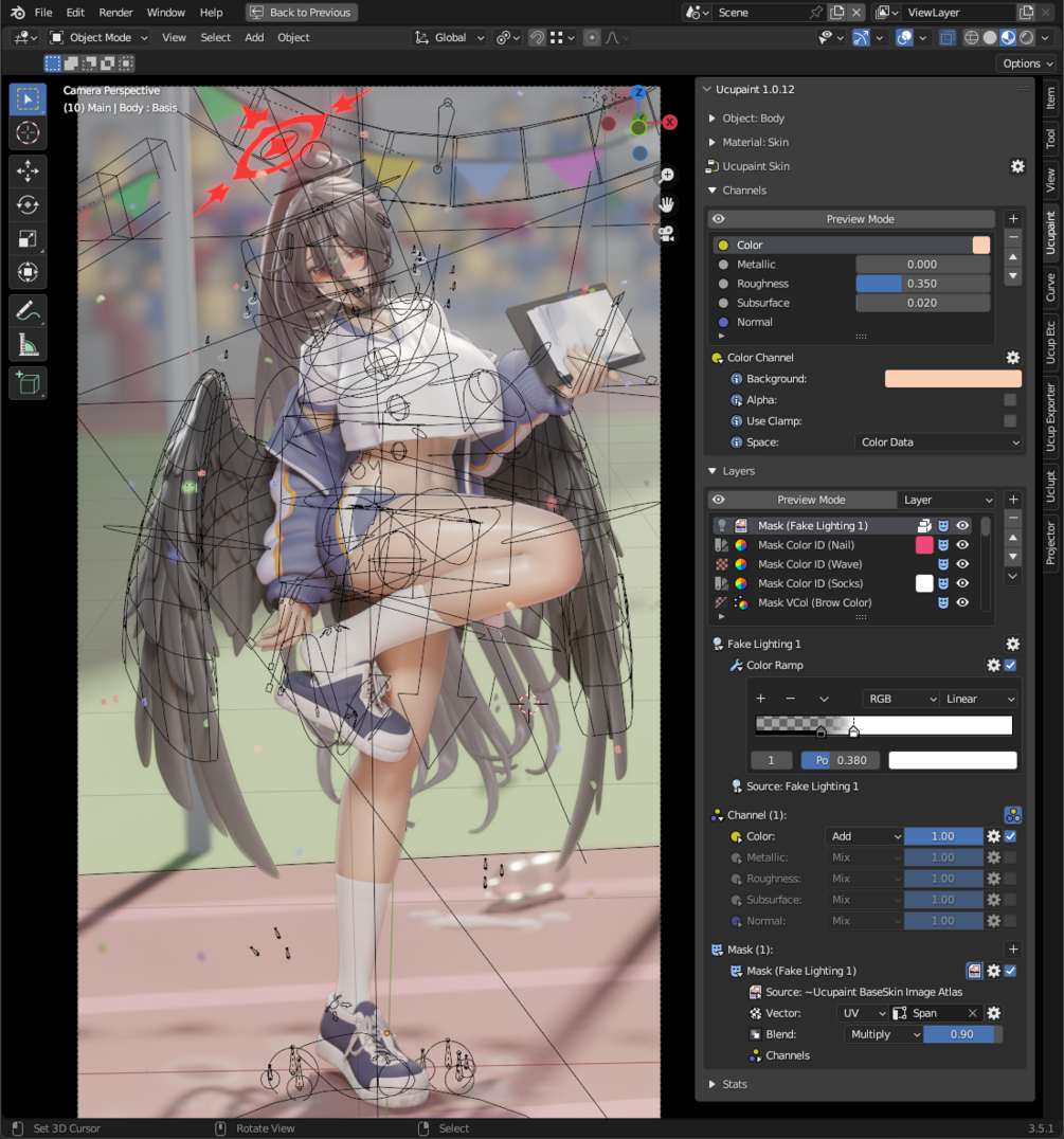 - An armature, but it's only to help me set the pose so it might not be weight painted properly.